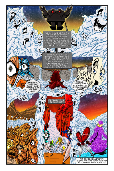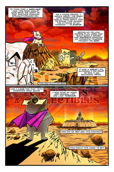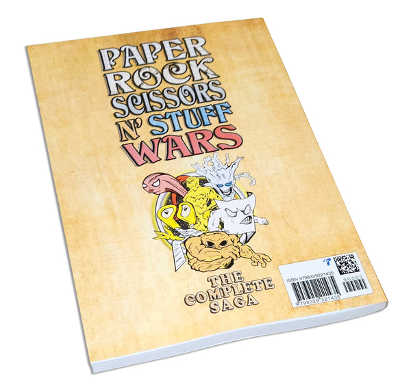 The epic planetary war between the living empires of Paper, Rock, Scissors, Plastic, Water, Sand, and Anvils is a comic book epic series! Originally published in B&W for four issues from 2016 to 2022, and now in full color, the Paper Rock Scissors N' Stuff Wars comic series is a reimagining of the classic and internationally enjoyed hand game Rock-Paper-Scissors. The first story arc lasted for 4 issues. The series is an insane melee, unlike anything you have seen before!